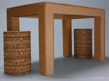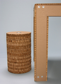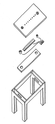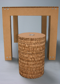 The table is made of ½ inch honeycomb cardboard and is completely dry mount (no adhesive is used). All joints and connections are fastened with metal corner braces (purchased at Home Depot), washers and screws. The electronics consist of micro-controller, two microphones with amplifiers and bandpass filters, and 12 ultra-bright LEDs.